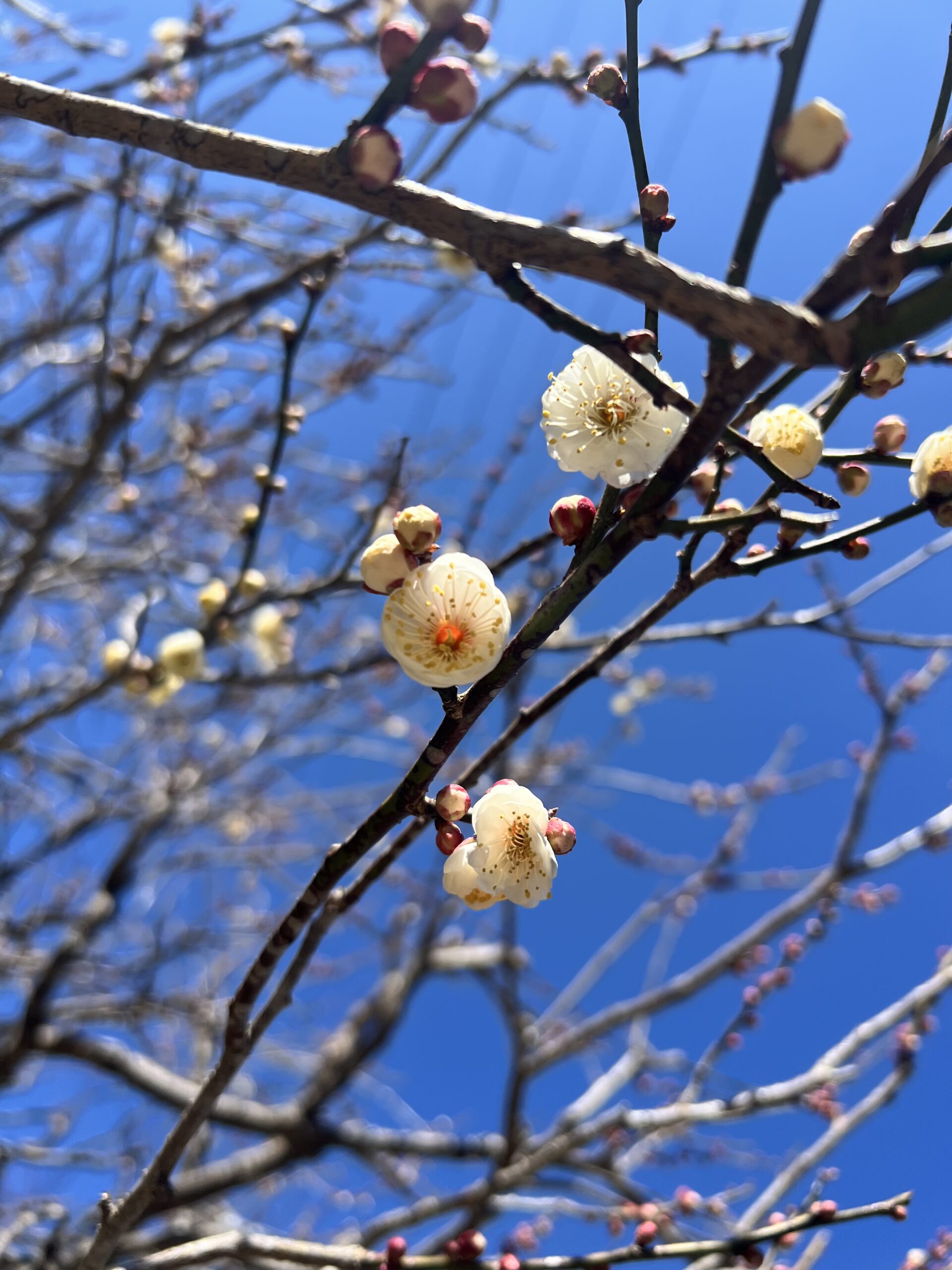 梅がぽつぽつ咲いていて、ほっこりしました🌸